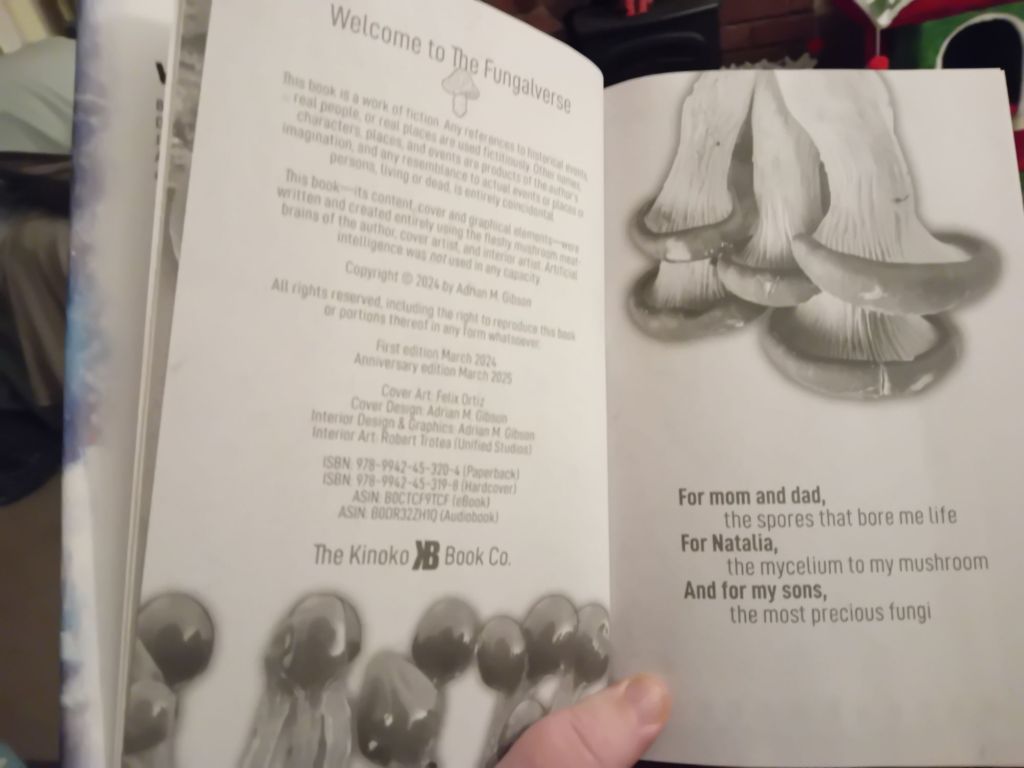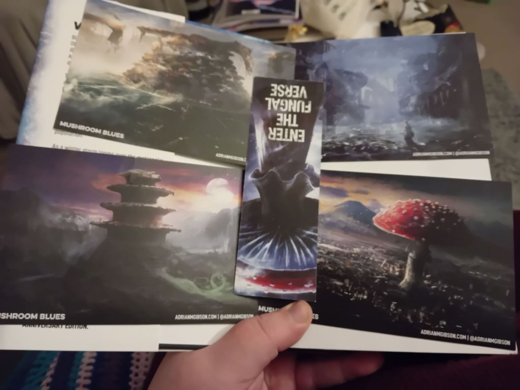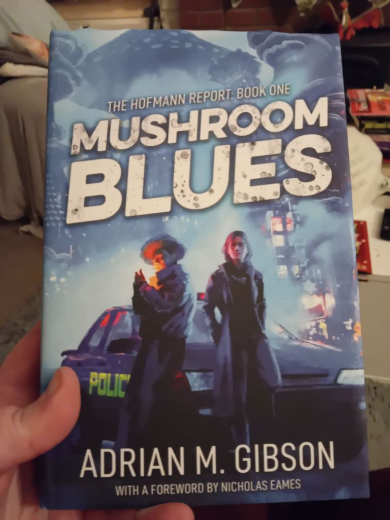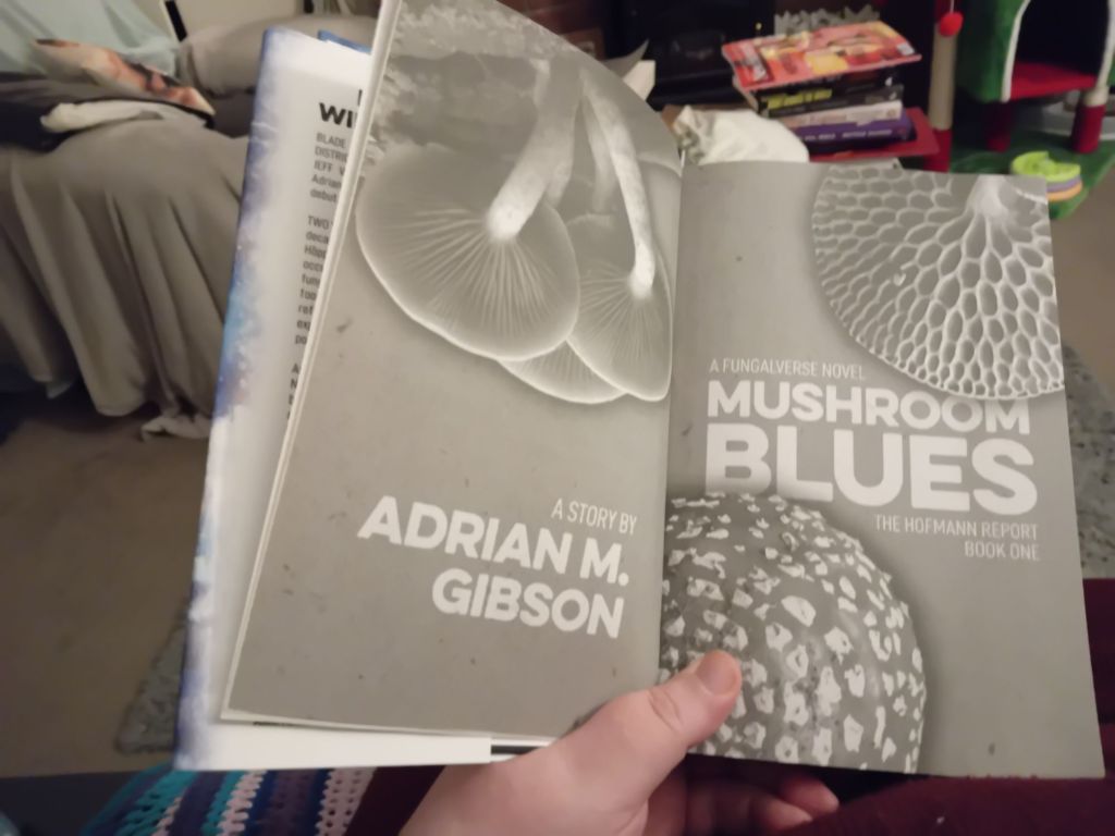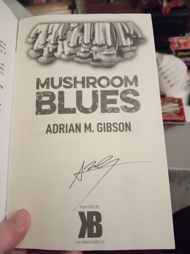 I picked this book up at World Fantasy Convention 2025 in Brighton, from the Broken Binding table in the dealers room. I got a lovely signed and illustrated hardback edition. Usually I’m uncomfortable with mushrooms – I saw that episode of Hannibal where a killer was using bodies to grow mushrooms and one of the victims was alive and sprouting, and I’ve had an issue ever since. It’s weird, anything with parasites also upsets me, but I managed to read Alien Clay, so I can manage to read Mushroom Blues.