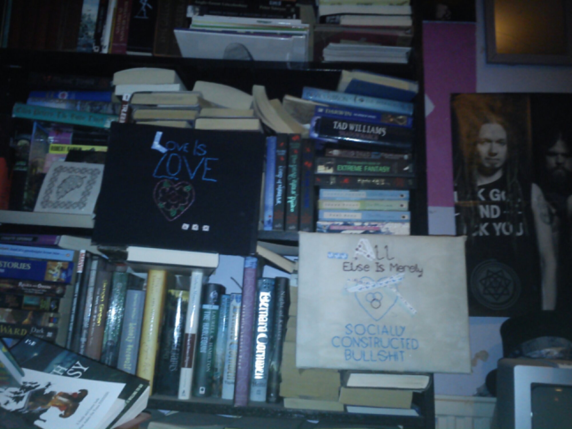 Here they are on my book shelf. I really need to organise that shelving unit better.