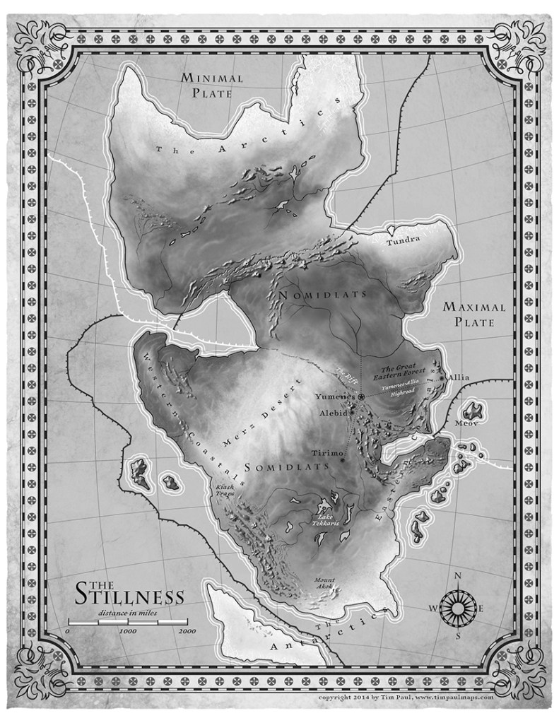 The continent that makes up The Stillness is two plates, the Maximal and the Minimal. There are plate boundaries that run through it and around it, but they use orogenes to dissipate earthquakes and volcanic eruptions. Now, that’s not a sensible thing to do, in the long run. Continents move, that’s just how these things work; messing about with that would cause no end of trouble. Volcanic eruptions can destroy large numbers; they can, if big enough, block out the sun for years; but they also provide essential nutrients to the soil and recycle minerals and water through the system. Some of the most fertile soil is volcanic. Underwater volcanoes provide unique ecosystems and drive evolution. We didn’t think life could exist with photosynthesis until we discovered the chemosynthetic life of the deep ocean volcanic vents.