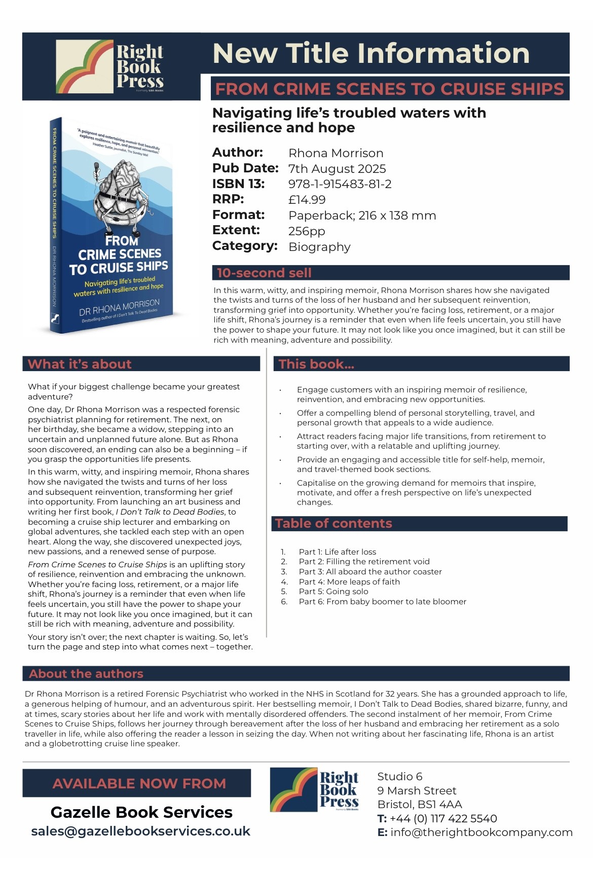From Crime Scenes to Cruise Ships is an uplifting story of resilience, reinvention and embracing the unknown. Whether you’re facing loss, retirement, or a major life shift, Rhona’s journey is a reminder that even when life feels uncertain, you still have the power to shape your future. It may not look like you once imagined, but it can still be rich with meaning, adventure and possibility.